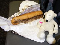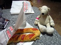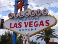 | Paddy eating his Philapelphia Cheesesteak at Philadelphia airport | Paddy at the Famous Las Vegas Sign | Paddy drinking a "Frozen Hot Chocolate" at Serendipity 3 | |