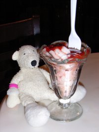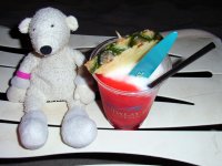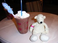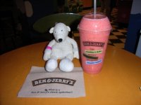 Paddy with a fruit smoothie at Ben & Jerrys |