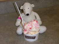 Paddy eating Strawberry Cheesecake & Peanut Butter ice-cream |